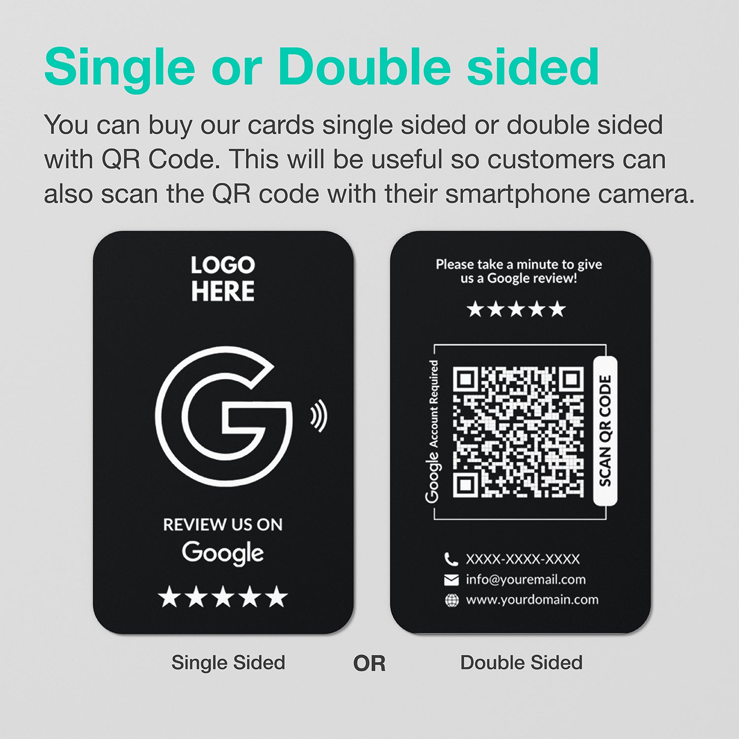 NFC Technology - Customers can tap the card with their smartphone to go straight to your Google review page – no apps needed.